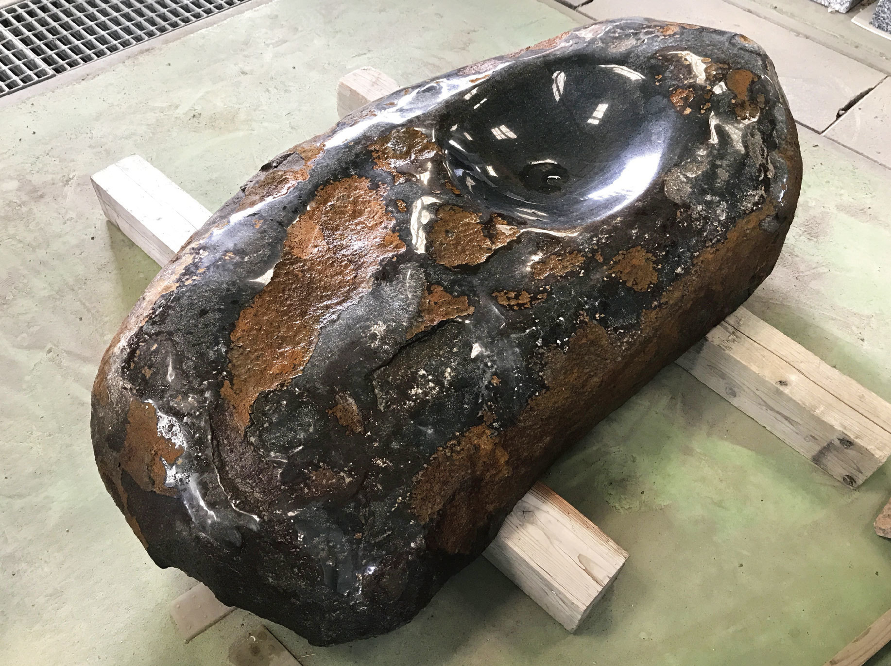 伊達冠石は、世界広しと言えども、宮城県伊具郡丸森町の大蔵山でしか採れない非常に珍しい石です。特徴は、丸みを帯びた形と、一つ一つ違う石の表情。世界的な彫刻家、イサム・ノグチが愛した石としても有名であり、彫刻家にとって憧れの石であります。鉄分を多く含んだ赤土に覆われた大地の約10m掘り下げたところにある伊達冠石の岩盤は、約2000万年前に活発に起こった火山活動によって、形成されたと考えられています。
