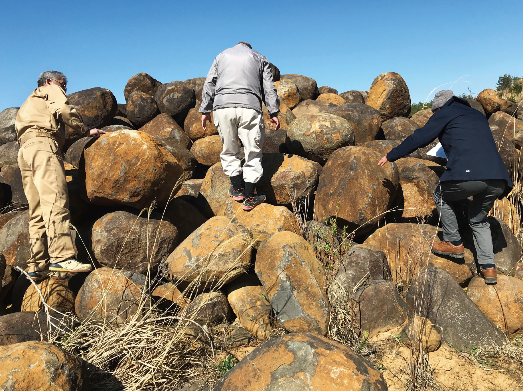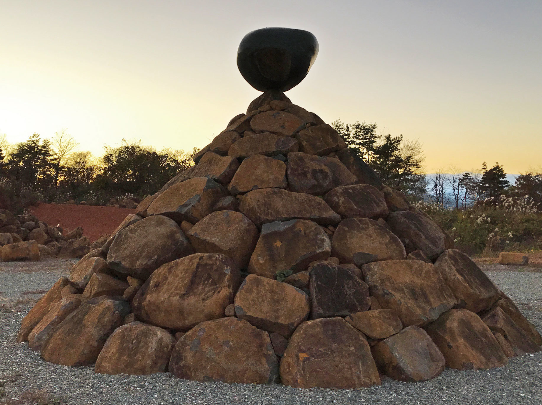伊達冠石は、世界広しと言えども、宮城県伊具郡丸森町の大蔵山でしか採れない非常に珍しい石です。特徴は、丸みを帯びた形と、一つ一つ違う石の表情。世界的な彫刻家、イサム・ノグチが愛した石としても有名であり、彫刻家にとって憧れの石であります。鉄分を多く含んだ赤土に覆われた大地の約10m掘り下げたところにある伊達冠石の岩盤は、約2000万年前に活発に起こった火山活動によって、形成されたと考えられています。