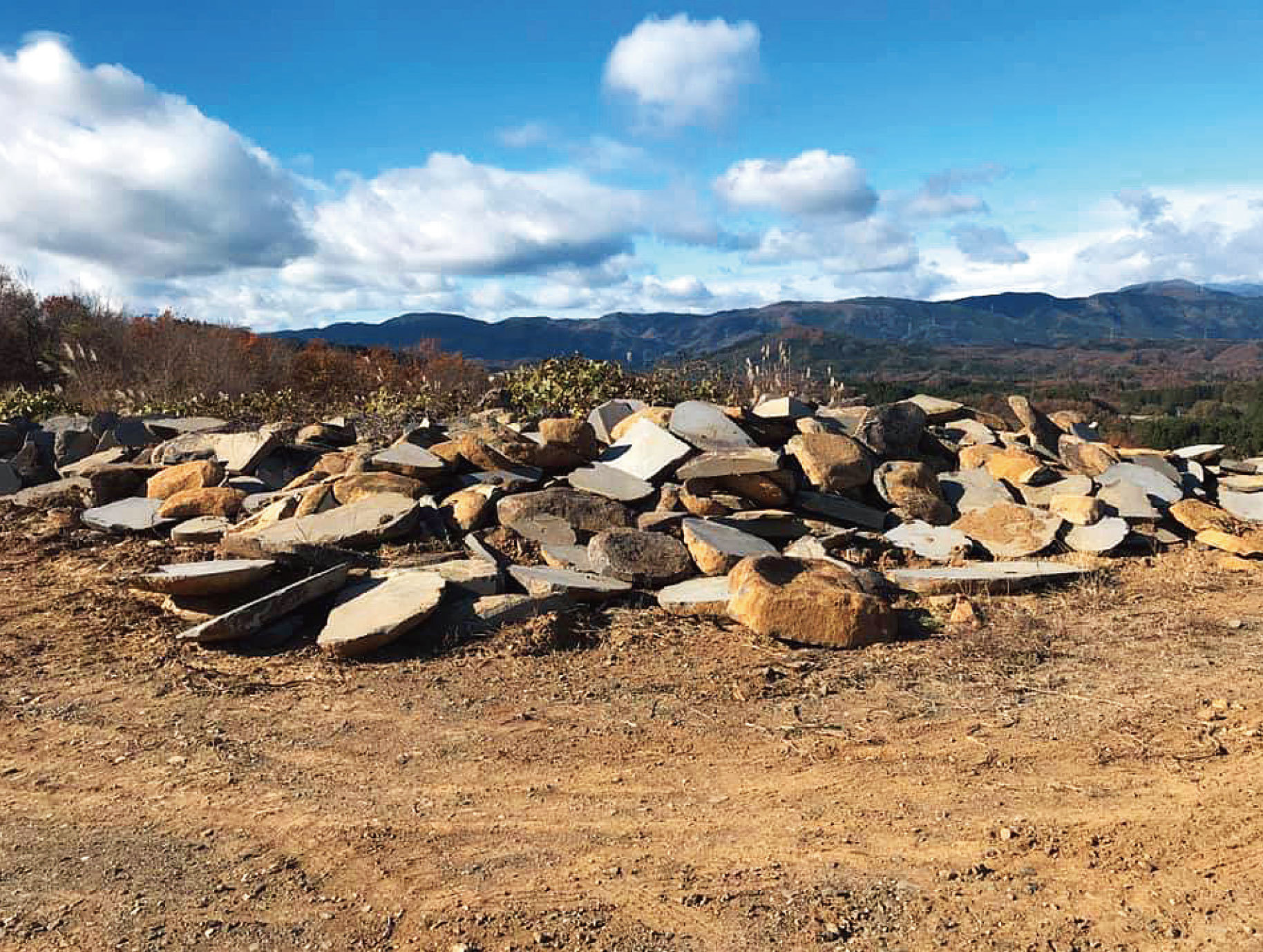 砕石・収集した商品は適切な形や状態に加工し、資材置き場にストックしていきます。